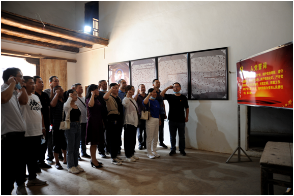 在李聚奎故居大廳,支部書記陳全元帶領(lǐng)全體人員莊嚴(yán)列隊(duì),向李聚奎將軍遺像三鞠躬.  隨后全體黨員面向黨旗,高舉右手,重溫人黨誓詞。跟隨講解員的腳步,黨員們認(rèn)真參觀了李聚奎故居復(fù)原陳列展和生平事跡圖片展。從人黨哲詞、千里尋黨、帶兵打仗到建設(shè)新中國(guó)等共同追憶了李聚奎將軍光輝的一生。